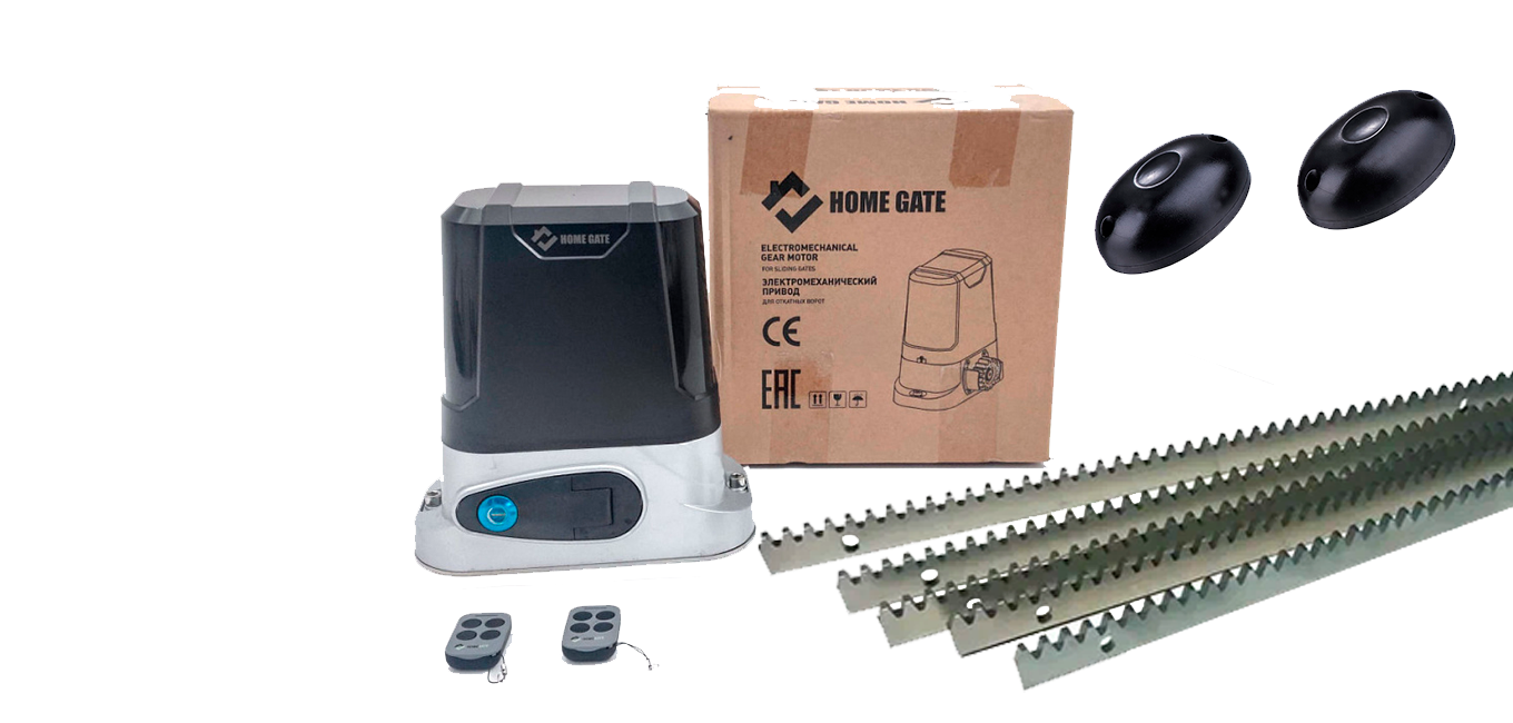 Комплект электропривода для откатных ворот HOME GATE LTM 600 + рейка 5 шт + фотоэлементы